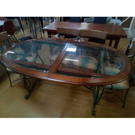 TABLE OVALE FER VERRE BOIS 1 ALLONGE